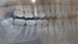 歯医者さんで使用しているレントゲンは放射線量が微量です。口全体を写す場合でも1回につき約0.04ミリシーベルトほどです。1年間で人間が自然に浴びている放射線量は2.4ミリシーベルトほどで、胎児に影響を及ぼす放射線量は50~100ミリシーベルトといわれていますから、ほとんど心配しなくてもよい数値です。また、レントゲン撮影する際には防護エプロンも着用します。防護エプロンを着れば、被ばく量はほぼゼロになります。