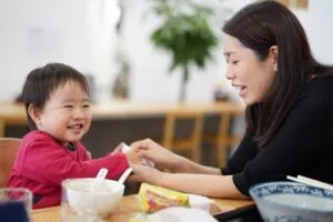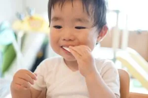 胃が小さく一回の食事量の少ない幼児期は、食事以外の時間におやつを与えて一日の栄養素を補う必要があります。